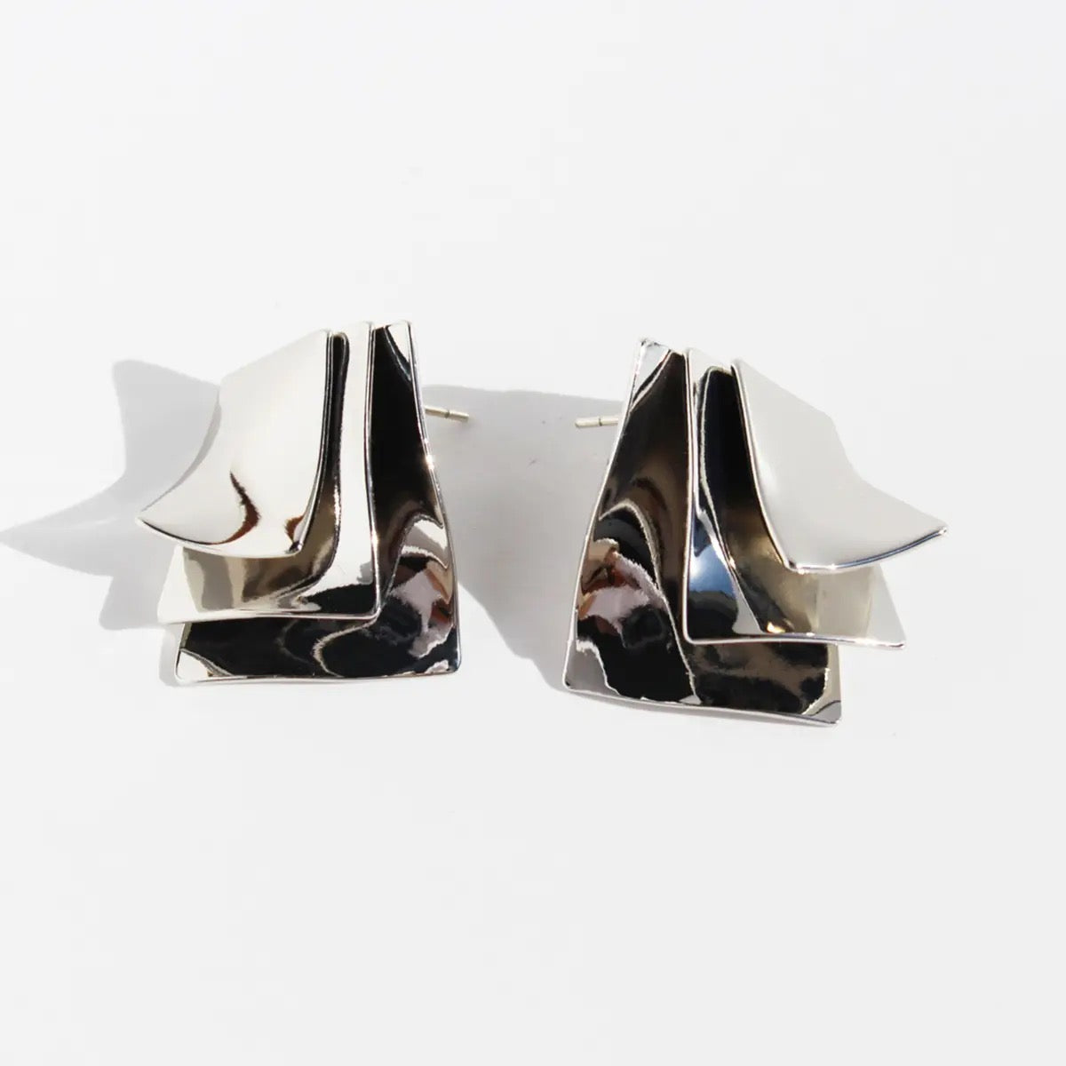 Curved Multi Layers Gold Stud Earrings with 925 Sterling Silver Post